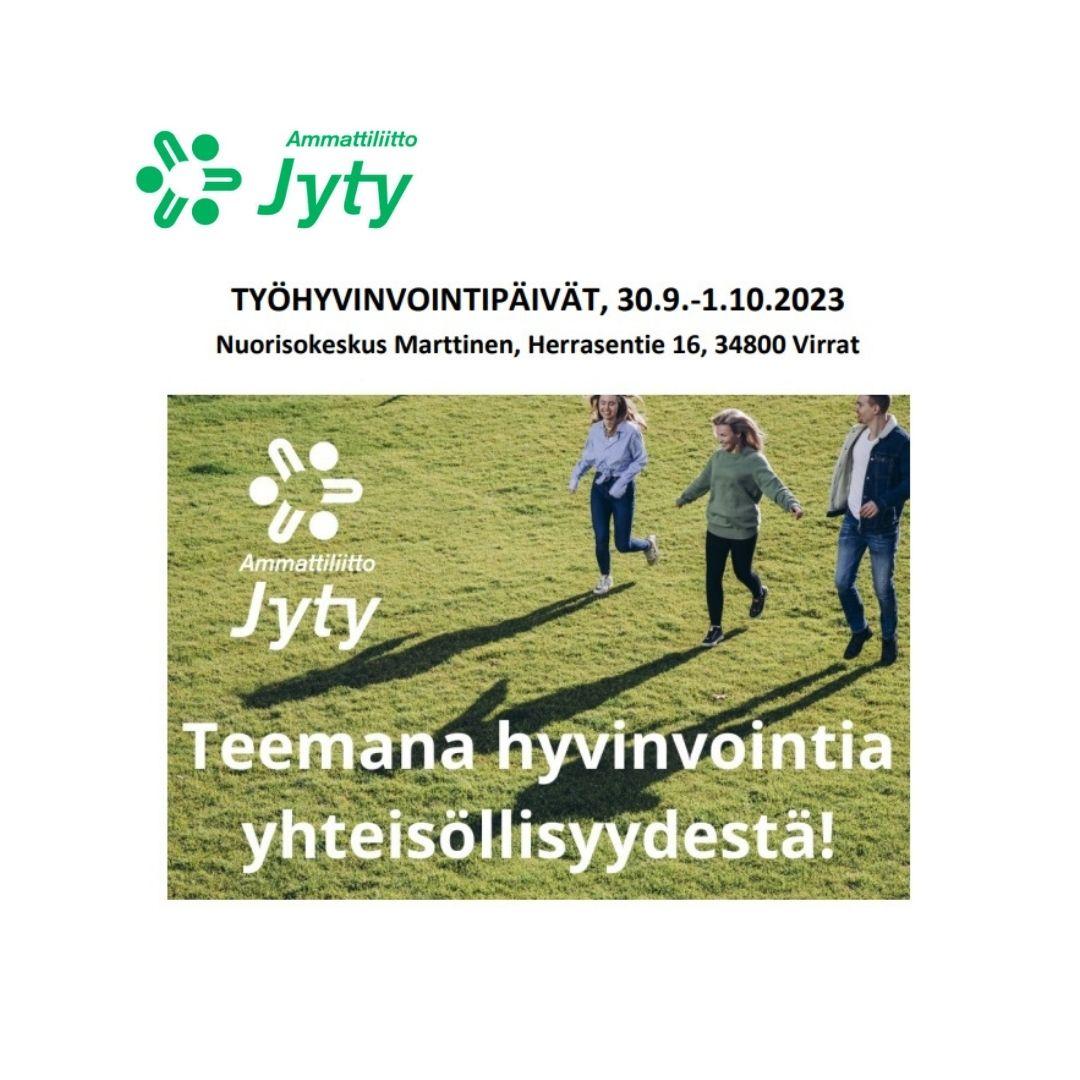 Jyty Västra Finlands arbetsvälmåendedagar hålls i Marttinen i Virdois (Virrat är det mer kända finska namnet på orten) 30.9 - 1.10 och temat är välmående via samhörighet och gemenskap. På programmet står föreläsningar som stöder arbetsvälmående samt aktiviteter i form av avslappning och bastubad, allt i gott sällskap. Kom med och njut av dagarna i Virdois, du kommer att känna dig stärkt och uppfriskad!