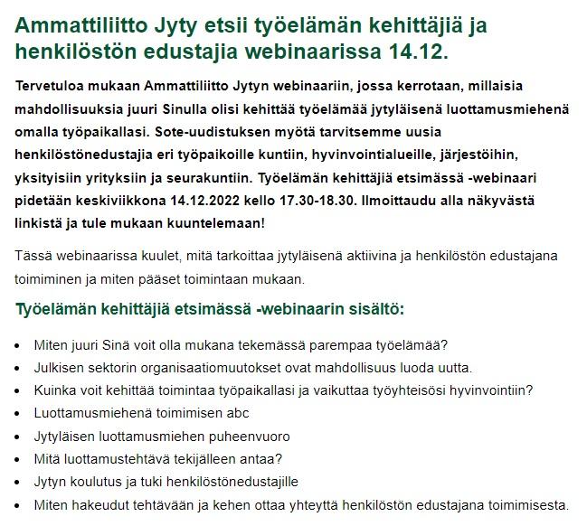 Webinaari - Sinustako työelämän kehittäjä tai henkilöstön edustaja?
